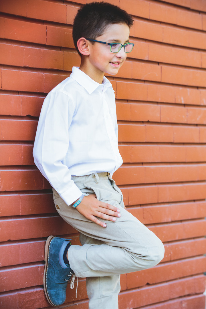 Camisa de rapaz de manga comprida, em piquê. Bolso de chapa à frente. 100% Algodão. Made in Portugal.